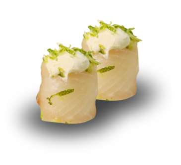 Fatia de Salmão enrolada no cream cheese e cebolinha.
